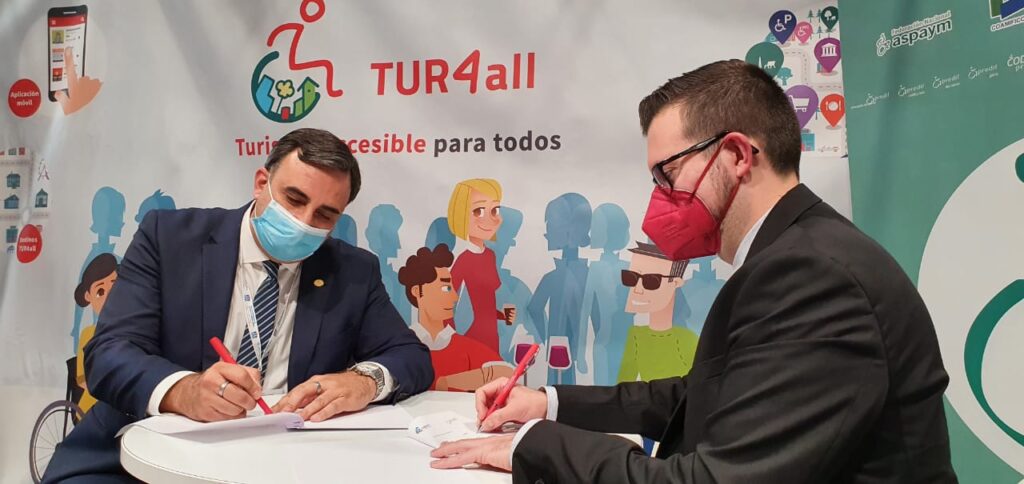 Vale destacar que, como parte del convenio, ambas instituciones trabajarán en la promoción de la oferta turística accesible disponible a través de TUR4all, aplicación móvil y página web del Turismo Accesible que tiene por objetivo que las personas con necesidades de accesibilidad puedan viajar, disfrutar de los destinos turísticos y participar en las actividades de ocio como cualquier turista. En TUR4all se publican recursos turísticos analizados por expertos en accesibilidad e incluidos por usuarios a través de un cuestionario de evaluación.
