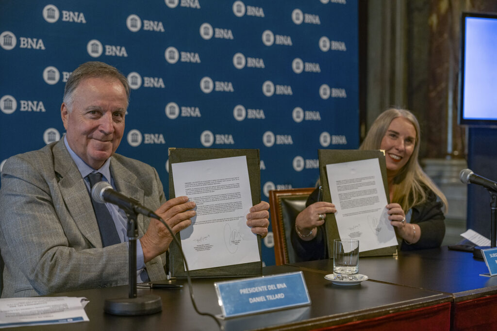 La firma del presente Convenio fue celebrada en un evento en el Banco Nación