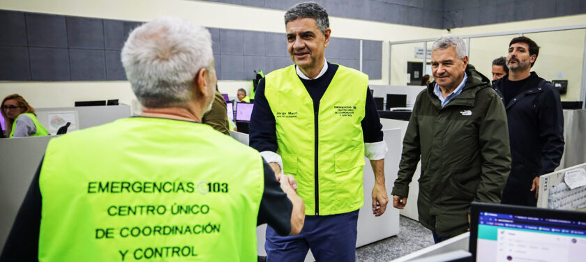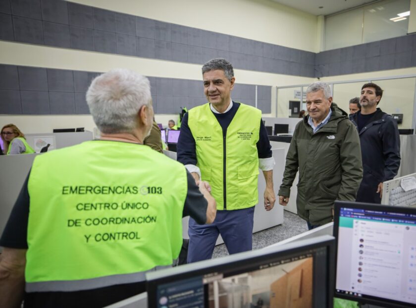 “Tuvimos una tormenta poco habitual y muy fuerte, cayeron más de 170 milímetros, en algunos barrios hasta 190. Y la Ciudad aguantó bien, desplegamos más de 2.300 agentes de manera preventiva, revisando sumideros, en plena tormenta, con todas las áreas de Gobierno, de Seguridad, Espacio Público, Orden Público, Defensa Civil, Bomberos y Policía. Y obviamente, todo lo que tiene que ver con pluviales que garantizan que el agua pueda escurrir”, describió el Jefe de Gobierno, Jorge Marcri, en el Centro Único de Coordinación y Control (CUCC) de Chacarita, donde supervisó junto a su equipo el paso de la tormenta por la Ciudad. Lo acompañaron el jefe de Gabinete de Ministros, Gabriel Sánchez Zinny; el ministro de Espacio Público e Higiene Urbana, Ignacio Baistrocchi; y el ministro de Seguridad, Horacio Giménez.
