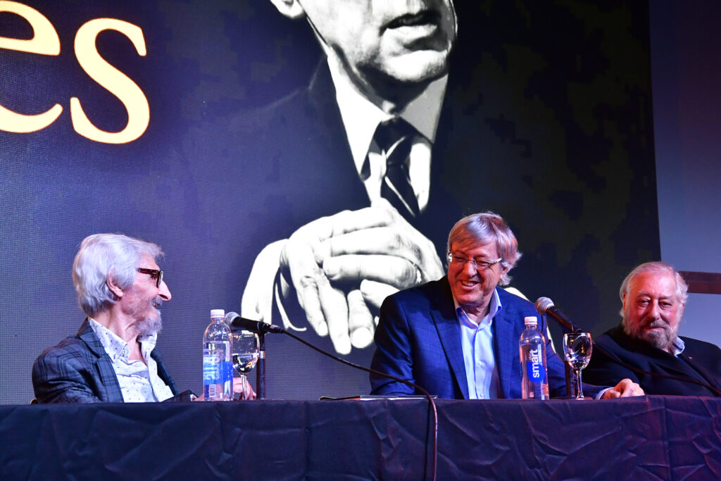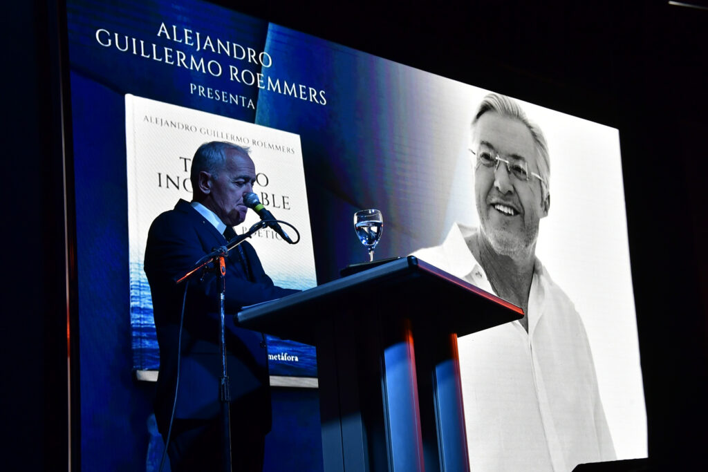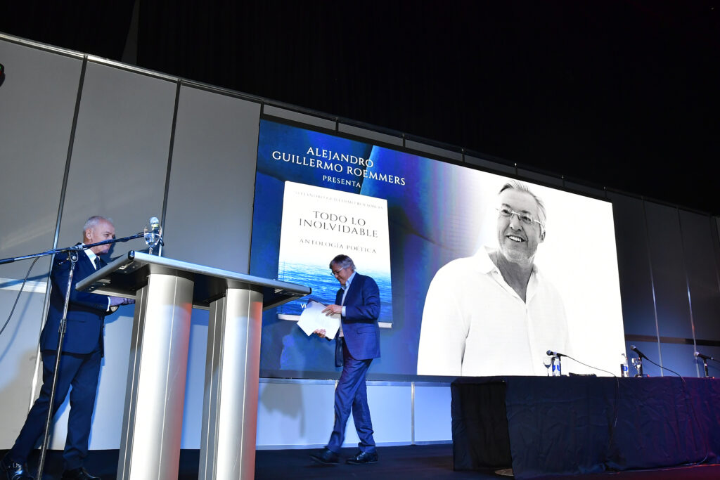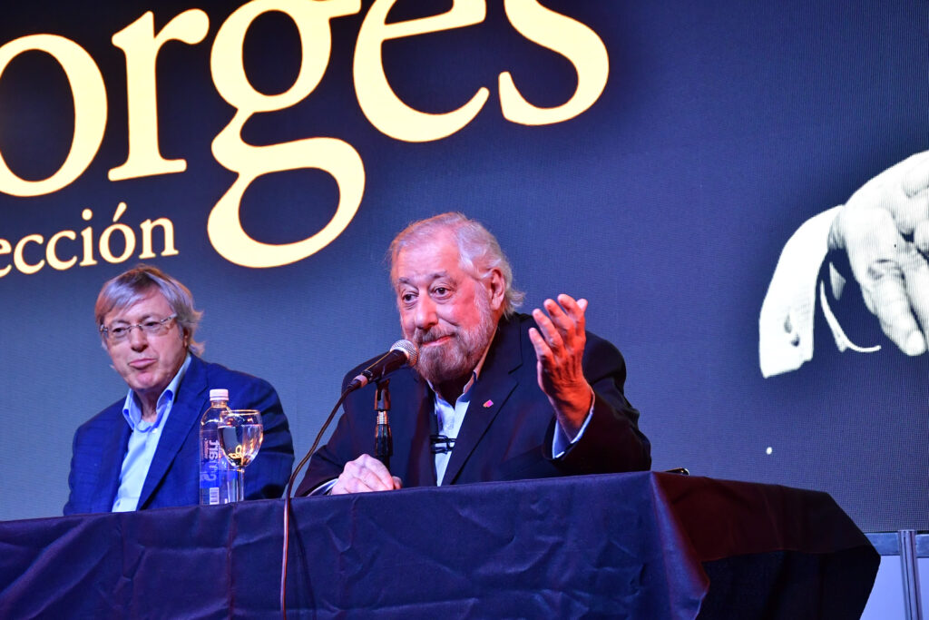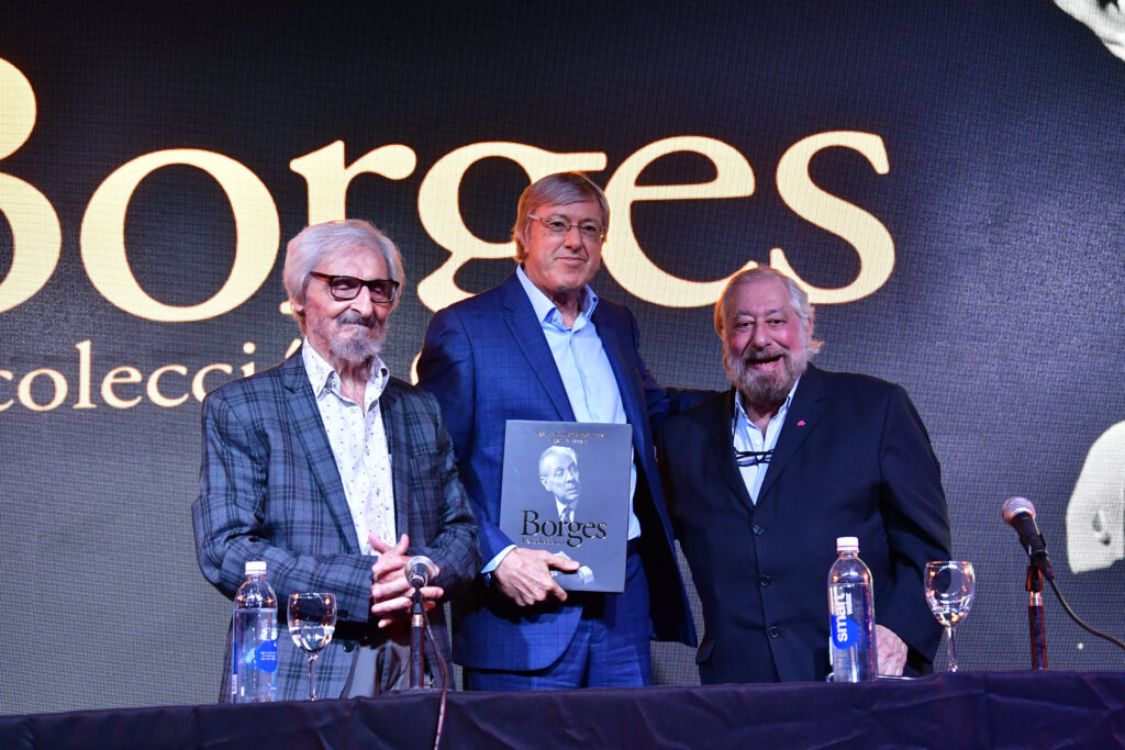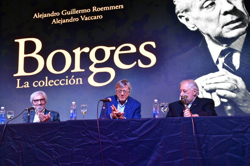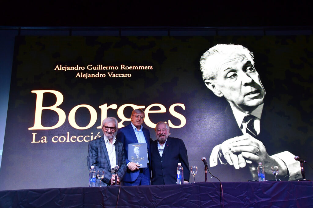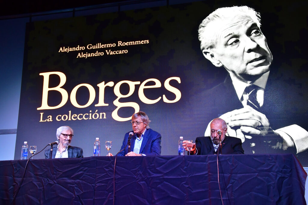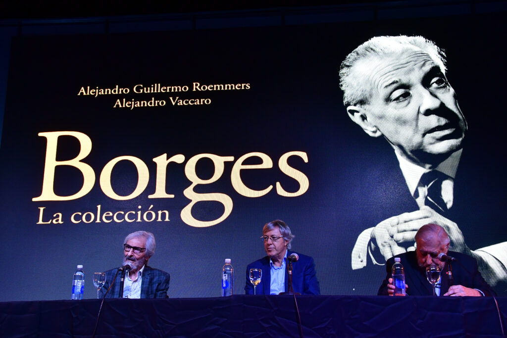 La Sala José Hernández, la de mayor capacidad de La Rural, se llenó para escuchar a Alejandro Roemmers y Alejandro Vaccaro junto a Roberto Alifano. Allí se presentó Borges. La colección, un libro que reúne más de 30 mil piezas del Borges menos transitado: cartas, manuscritos y escritos tempranos.