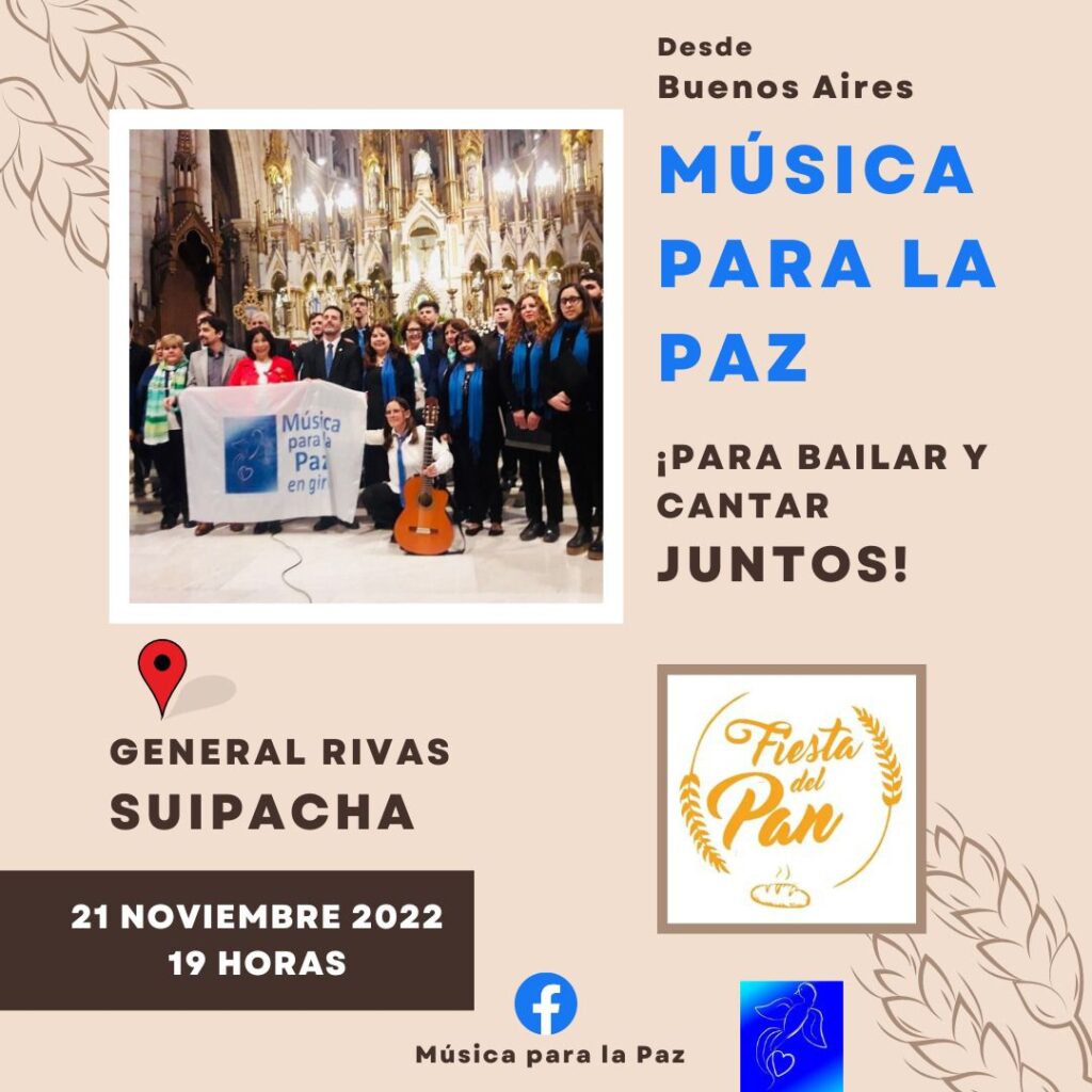 Los músicos serán para esta velada, de una de las fiestas populares más importantes de la provincia de Bs As: Paola Corti (cello), Adrián Croce (percusión), Lázaro Martin Zapatero (clarinete), Oriana Marchan (mezzosoprano) y en guitarra y dirección musical, Carolina Patricia Davis. La asistencia en escenario de Numa Viard y la producción general de Graciela Almada. Música para la Paz, pretende en cada una de sus presentaciones en el país y en el exterior, dejar un mensaje de confraternidad y encuentro a través de la música. Tienen sedes en varias provincias argentinas y han recibido varías distinciones y premios desde su fundación en el 2016.