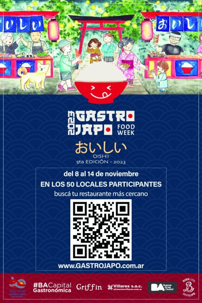 Llega la quinta GASTRO JAPO FOOD WEEK, el icónico evento gastronómico con lo mejor de la cocina, pastelería y coctelería nipona, en Argentina. Con más de 50 participantes y más fuerza que nunca será una nueva oportunidad para llevarte a un exquisito viaje culinario donde «OISHII» (trad. delicioso) será la brújula que guíe cada bocado en los restaurantes, emprendimientos gastronómicos y pastelerías, tanto en formato presencial, deliveries o take away. –
