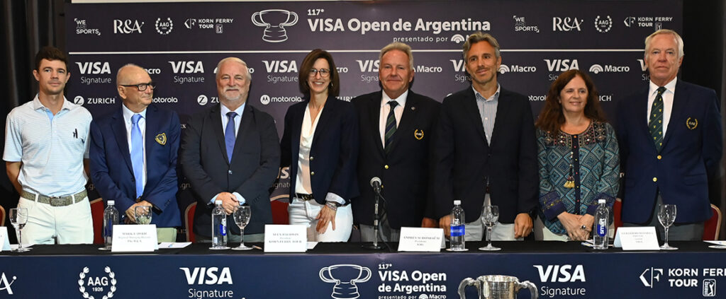 De la presentación formaron parte Andrés Schönbaum, Presidente de la Asociación Argentina de Golf; Marcelo Servidio, Presidente del Olivos Golf Club; Mark Lawrie, Regional Managing Director para The R&A en Latinoamérica y el Caribe; Alex Baldwin, Presidente del Korn Ferry Tour; Guillermo Mansilla, Director de VISA Argentina; Miguel Leeson, Director Ejecutivo de la AAG; Adriana Arias, Head of Communications & Sustainability de Zurich Argentina; y el profesional argentino Jorge Fernández Valdés (campeón del torneo en 2021).
