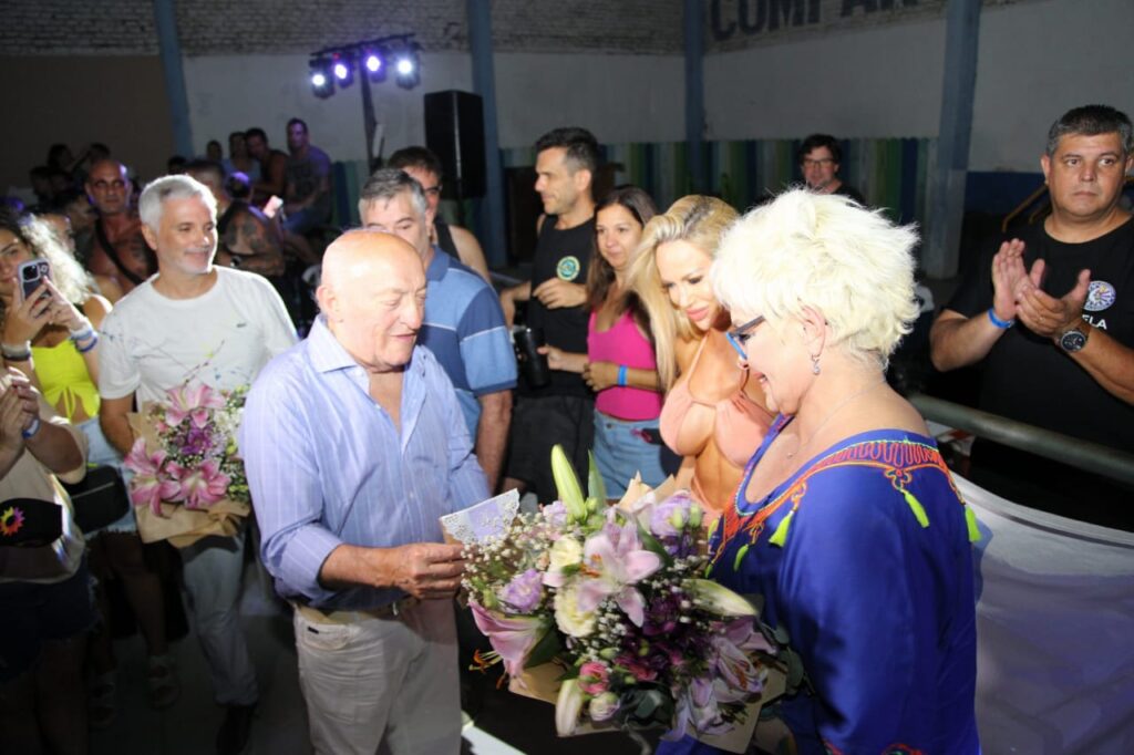En la previa de la salida fueron agasajadas ambas personalidades del espectáculo, recibieron flores y el agradecimiento por su presencia en el carnaval.