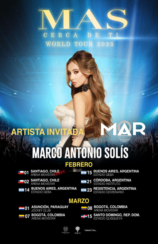 El 2025 se perfila como un año clave en la carrera de MAR. Como parte de su expansión internacional, será la artista invitada en la gira ‘Más cerca de ti’ de Marco Antonio Solís, recorriendo Sudamérica con presentaciones en Chile, Argentina, Paraguay y Colombia. Además, regresará a escenarios icónicos como el Movistar Arena de Santiago de Chile, donde se presentó por primera vez junto a Gloria Trevi, y continuará sorprendiendo a sus seguidores con nueva música y shows imperdibles.