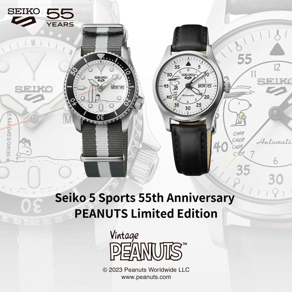 En el modelo SRPK25, Snoopy es un surfista que domina las olas. La tabla de surf en la esfera es un diseño original de Seiko 5 Sports, brindando al reloj una sensación única que solo la colaboración puede lograr. Por su parte, el arte de SRPK27 muestra a Snoopy volando por el aire como un helicóptero, con sus orejas caídas de beagle como hélice, y su mejor amigo, Woodstock, como piloto. El paracaídas en el fondo de la caja es un diseño original de Seiko 5 Sports, que también crea una sensación especial y exclusiva de la colaboración.