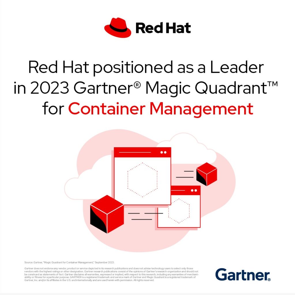Red Hat, Inc., el proveedor líder mundial de soluciones open source, anunció hoy que Gartner ha incluido a la compañía como Líder en el primer Magic Quadrant™ para la gestión de contenedores por su producto Red Hat OpenShift. La evaluación se basó en criterios específicos que analizan la integridad general de la visión y la capacidad de ejecución de la empresa.