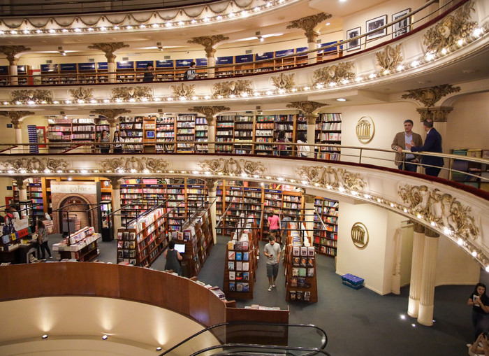 El “Ateneo Grand Splendid” es la librería más grande de Sudamérica, y fue elegida por el diario británico The Guardian como la segunda mejor librería del mundo y la revista estadounidense National Geographic la destacó como la más linda. En el local además de libros se puede comprar música y películas.